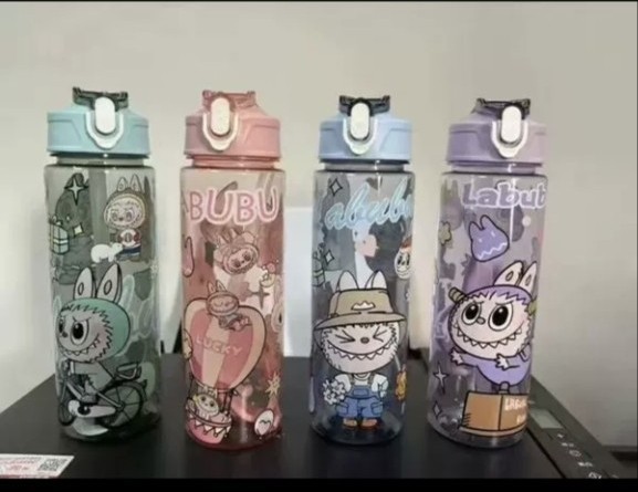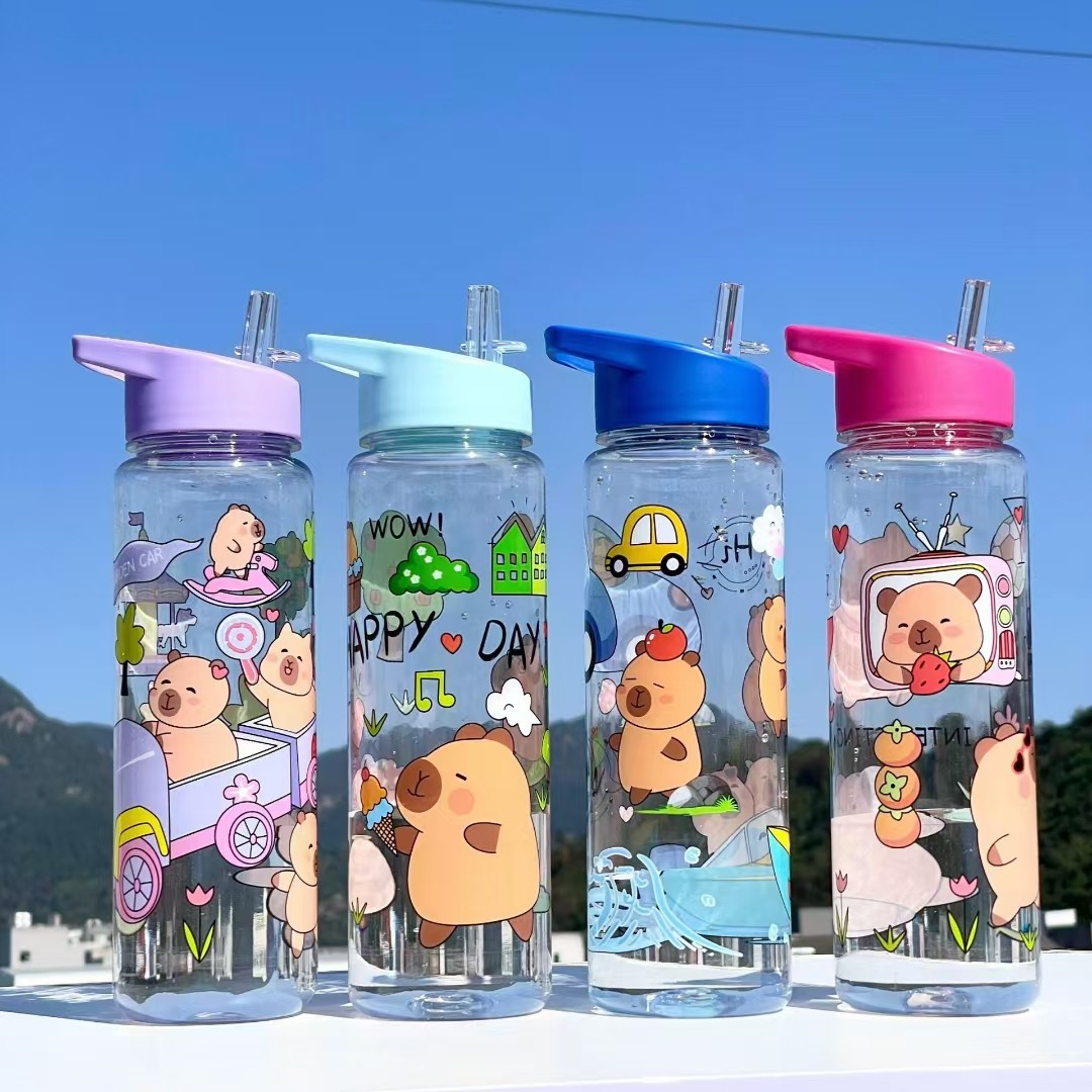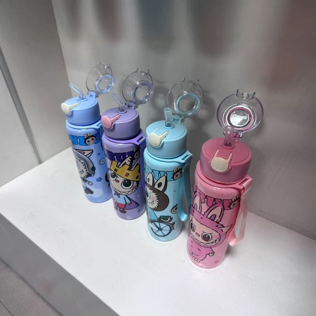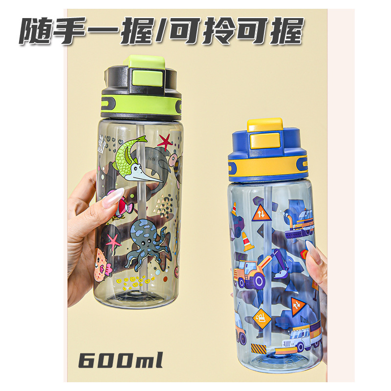 在庫あり Yikoo 漫画トレンディなウォーターカップポータブル屋外大容量学生子供用ストロープラスチックケトル 600 mL
