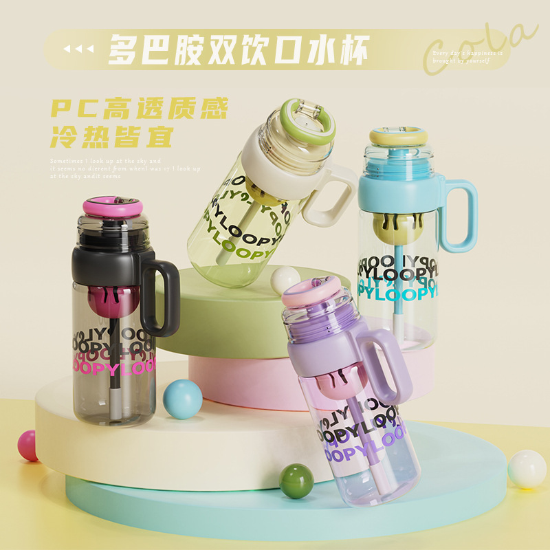 女の子用の見栄えの良いダブルドリンクカップ、プラスチック製ウォーターカップ、大容量、クリエイティブな男性の夏の学生の学校用ポータブルストローカップ