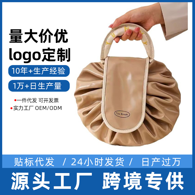 化粧バッグ女性大容量2024新型携帯式怠け者旅行収納ひも出張洗面バッグ一枚式