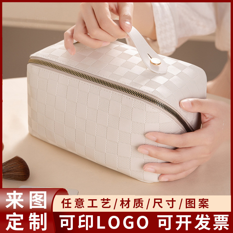 化粧バッグ高颜値方眼枕バッグ大容量ポータブルpu皮化粧品収納バッグ旅行洗面バッグ