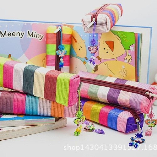 韓国版カラーバー布芸筆袋創意シンプル筆箱小清新文房具箱布芸少女文房具民俗プレゼント