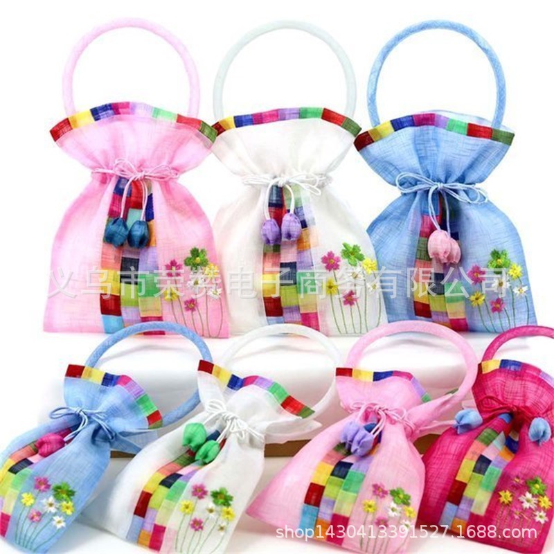 韓国版ハンドバッグ刺繍束口バッグ女性携帯収納バッグ韓国式ラミーバッグ韓国民俗プレゼント