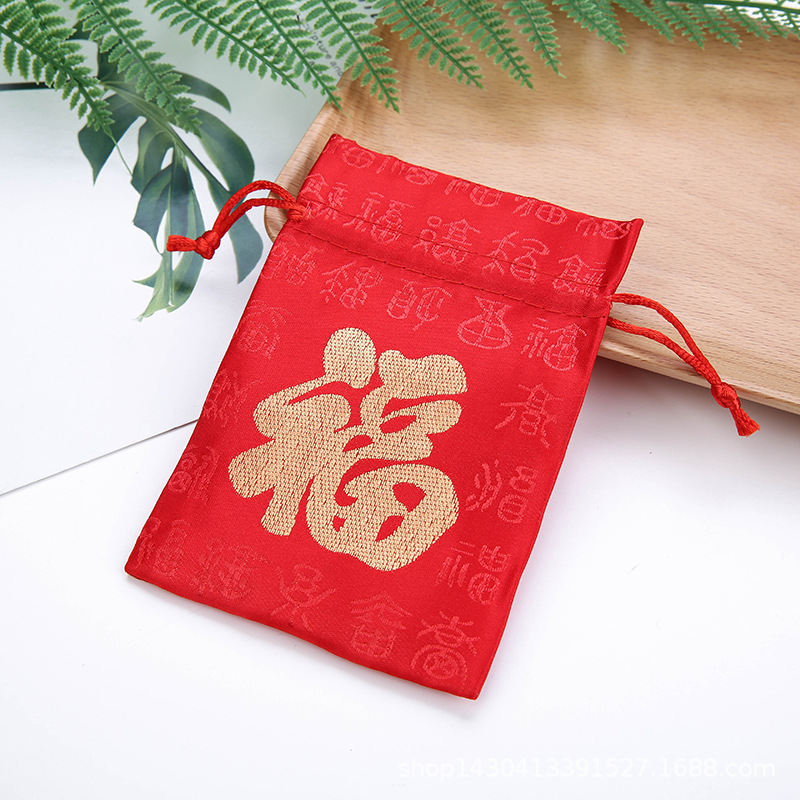 中国風の赤い福袋の福の字は喜糖の包装袋のアクセサリーの文を引き出して贈り物の袋を遊びます。