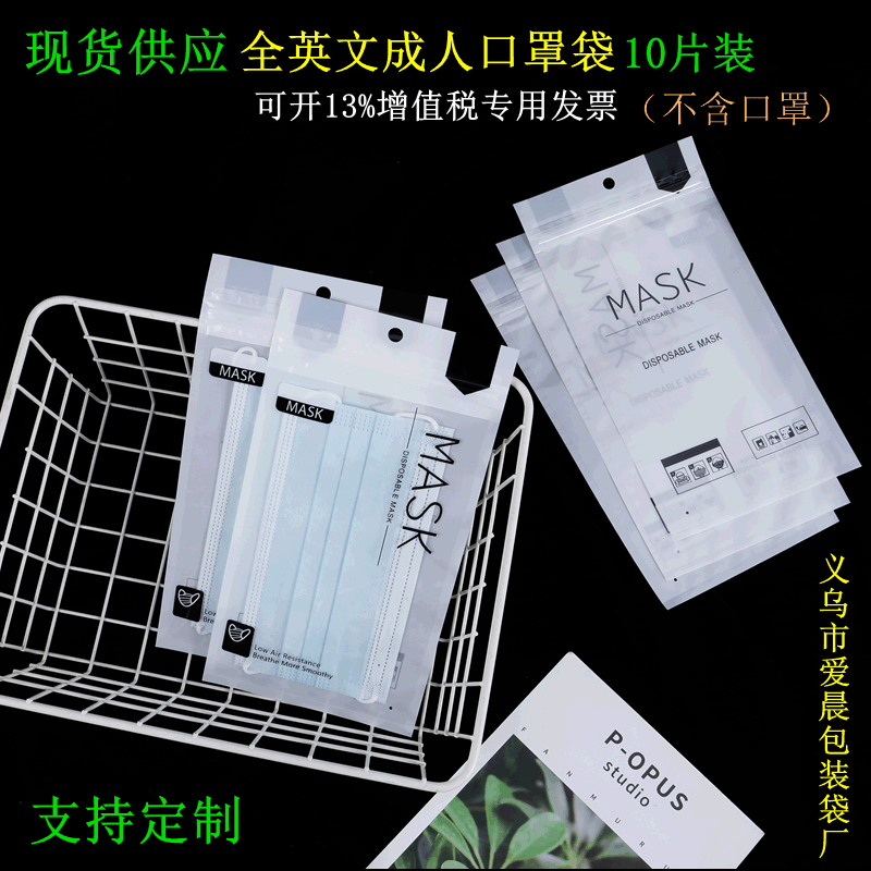 現物全英語 (10枚入り) 汎用マスク包装使い捨て児童フロストPETクリップ自封袋