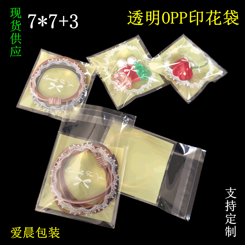 Oppプリント袋焙煎包装自己粘着袋ビスケットキャンディーアクセサリープレゼント7*7 + 3cm定卸売り