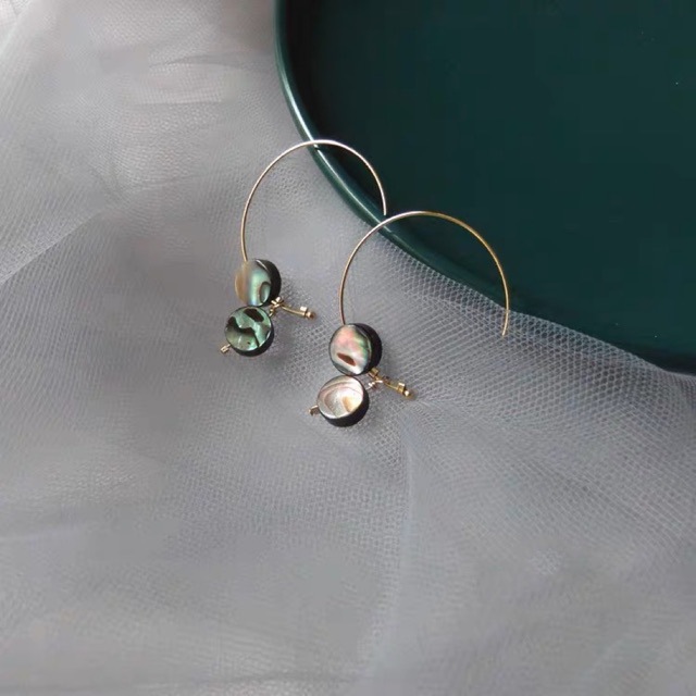 天然アワビ貝殻灰月光石イヤリング女性長型彩貝シンプル美韓国ファッション耳飾りメッキ14k金