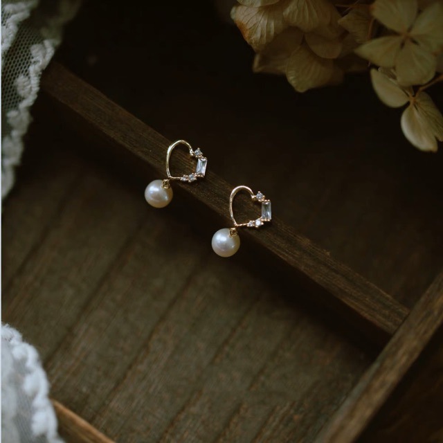ジルコン愛天然淡水真珠925銀針ピアス女性の洗練された優しさが個性的なファッションブーム