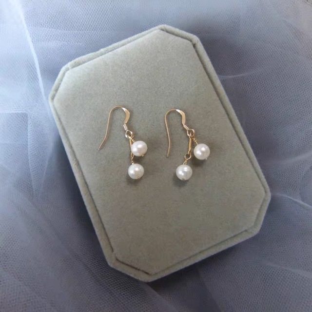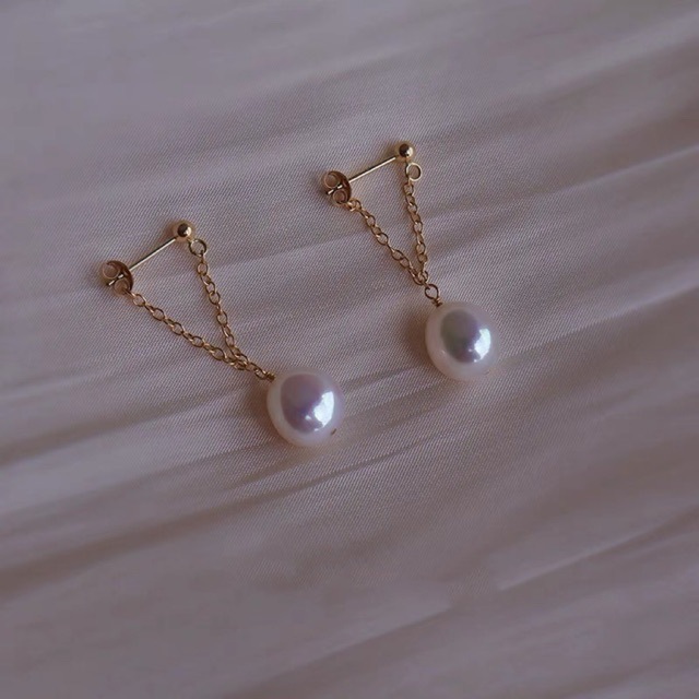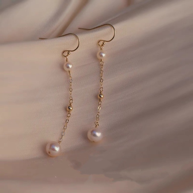 満天星天然淡水近円鏡面極光真珠耳フック小清新揺れるロングイヤリング仙気ロングタイプ