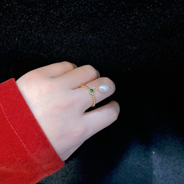 オリジナルデザイン天然淡水真珠14k包金小衆デザイン個性指輪シンプルな指輪insファッション女
