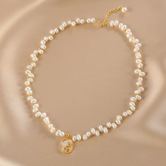 バロック天然真珠ネックレス女性の洗練されたデザインotボタン不規則な異珠鎖骨鎖貝殻ペンダント首鎖