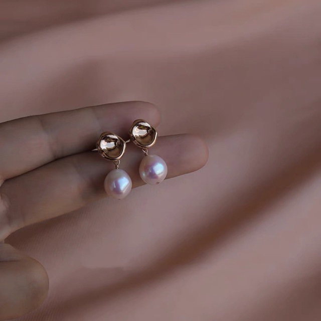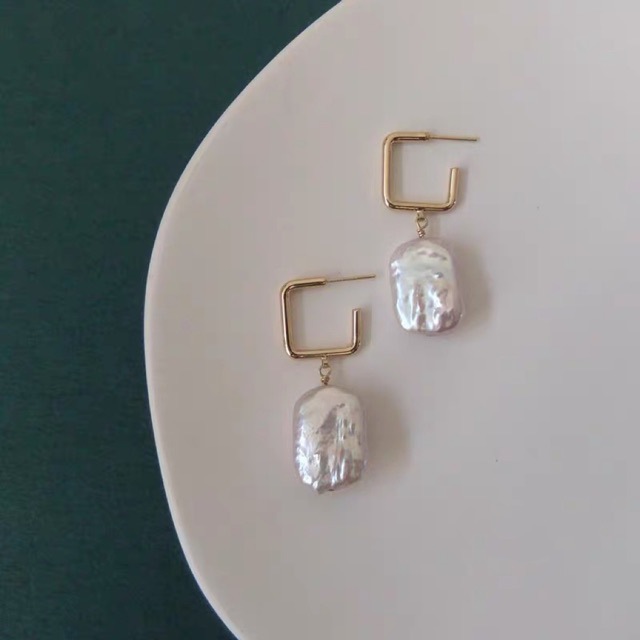 油絵の質感天然バロック異形真珠銀針金メッキピアス凹形不規則金属イヤリング女