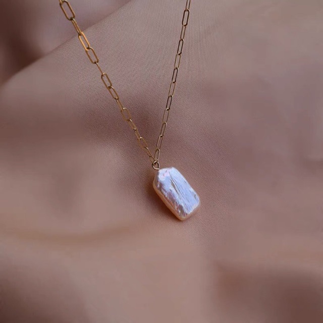カラフルな砂糖の四角の形の天然のバロックの単一の真珠のネックレスの鎖の骨のチェーンの復古の高級なデザイン感のペンダントの女性