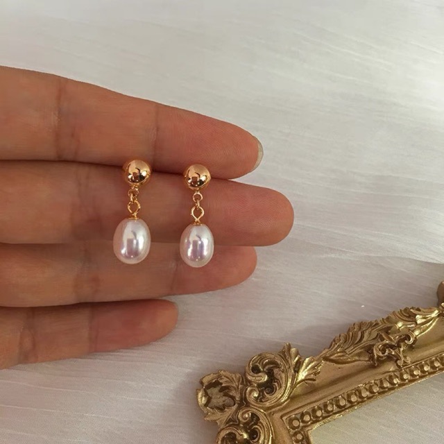 925銀針金メッキ耳針優しい洗練された小さな香り風イヤリング水滴形強い光天然淡水真珠ピアス
