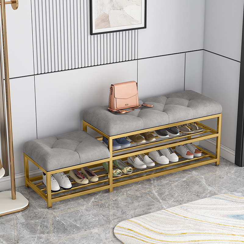 靴を履き替える椅子の入り口の家庭用スツールのアイデアは、靴棚のフードの間に座って靴を試すことができます。