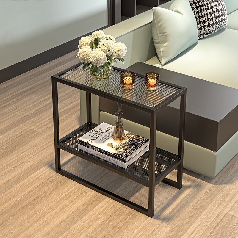 軽くて豪華な長方形のガラスの辺のいくつかの客間の家庭用のシンプルな角のいくつかの北欧の鉄の芸の小さいお茶のいくつかのソファーの辺の狭い辺のテーブル