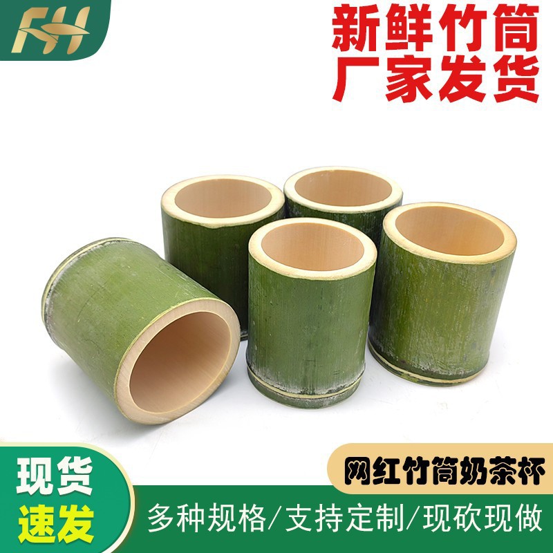 ソースメーカー卸売り竹製円形竹筒飯竹筒杯ミルクティーアイスクリーム創意網紅竹盛器竹カップ
