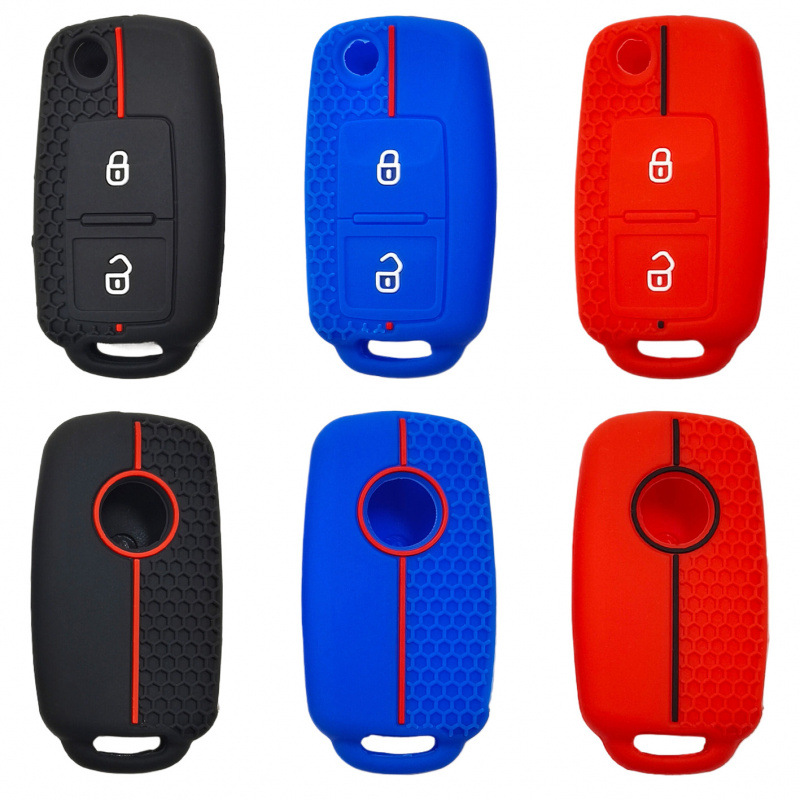 大衆ゴルフパサートPOLOシュコダック折り畳み2ボタンハニカムシリコンキーカバー透かし彫り金を適用する