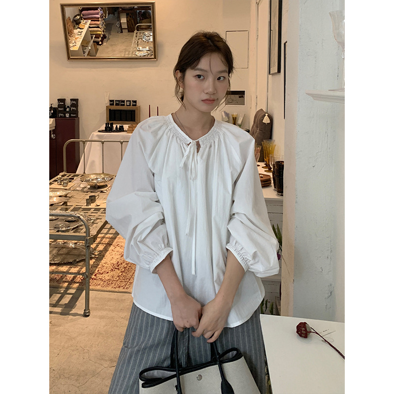 THE MIND レースアップラウンドネック長袖シャツ レディース 2025十三行 秋新作 韓国風シンプルシャツ T069