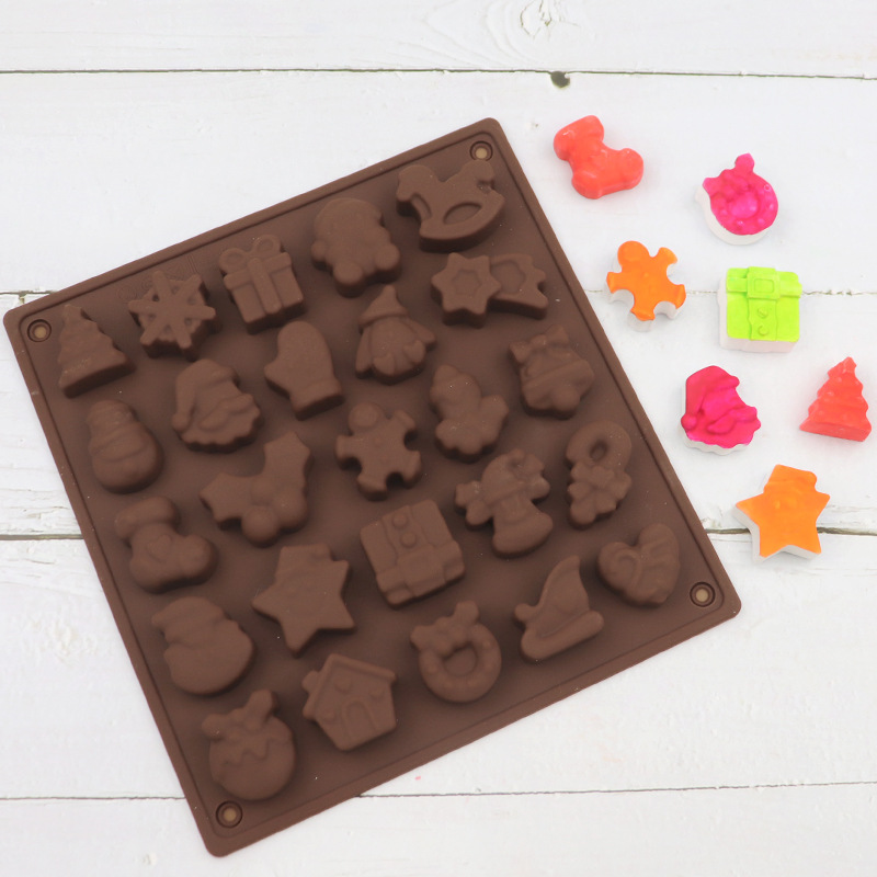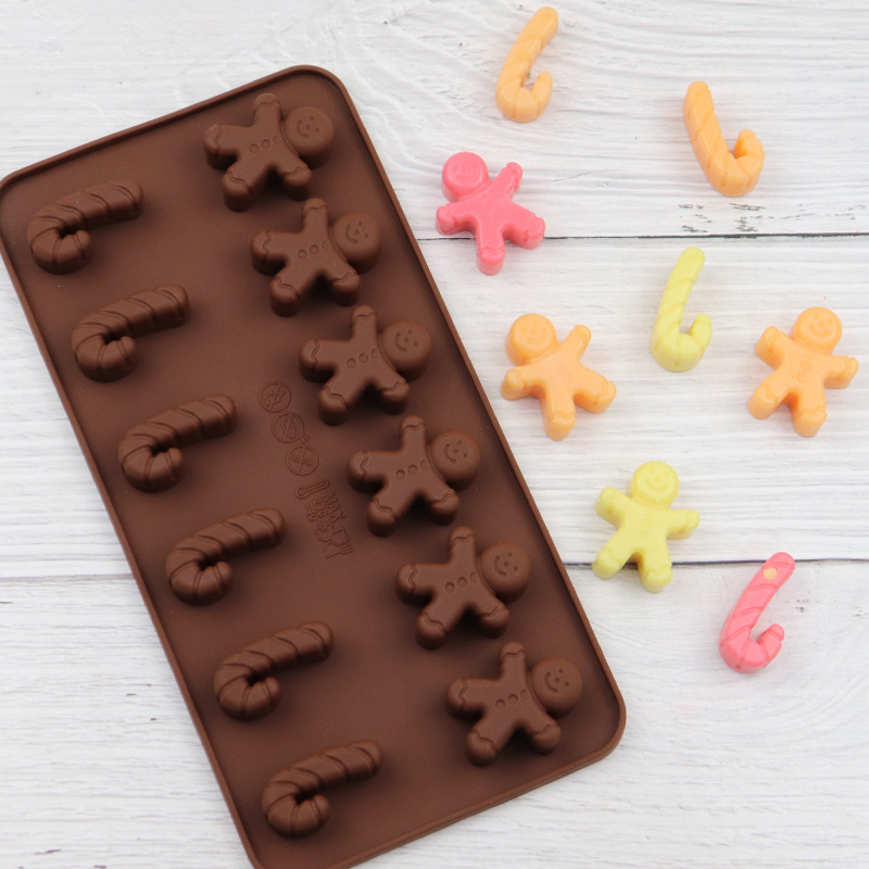 雪だるまのチョコレート型のシリカゲルのアイスモデルよりクリスマスシリーズのシリコン型の松葉杖のギフトボックスの型を焼きます。