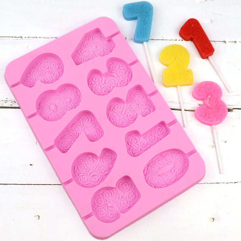 0-9の数字のバラのシリカゲルロリポップのモデルの漫画のチョコレートのチーズの棒の食品級よりも棒に合わないです。