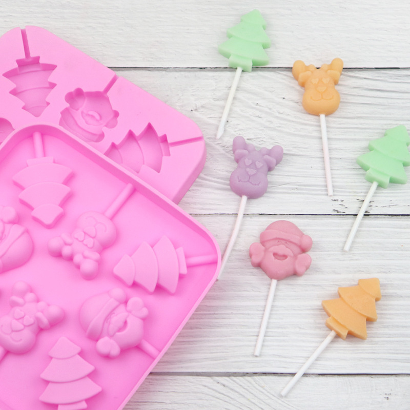8連クリスマスヘラジカ老人シリカゲルロリポップ型 (棒に合わない) 食品級シリカゲルより高温になる