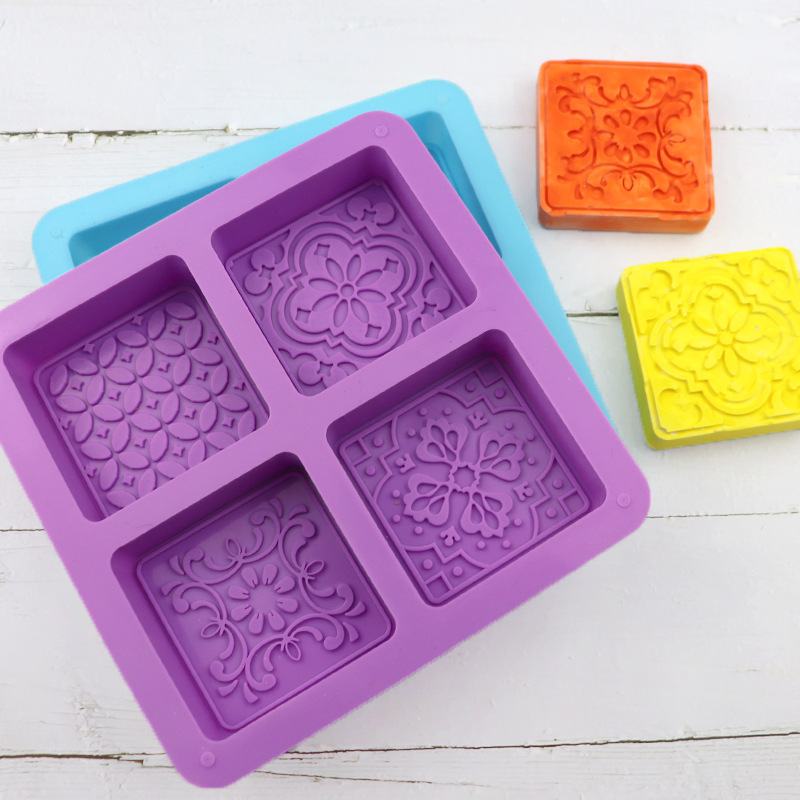 4連方形模様のシリカゲルチョコレート型より手作り月餅ケーキ型diy手作り石けん型