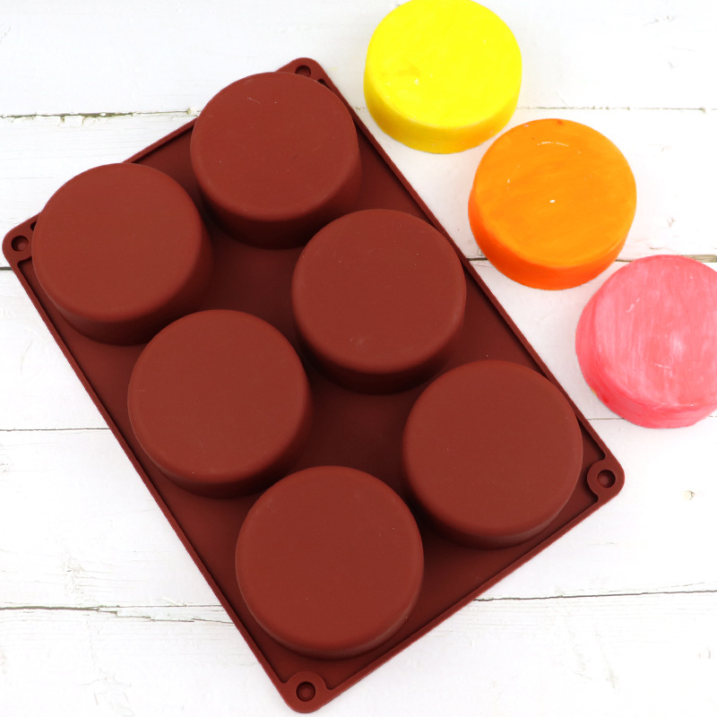 6連の大きい円柱のシリカゲルの手の石鹸の鋳型のシリカゲルケーキの鋳型のDIYよりプリンのゼリーの鋳型を焼きます。