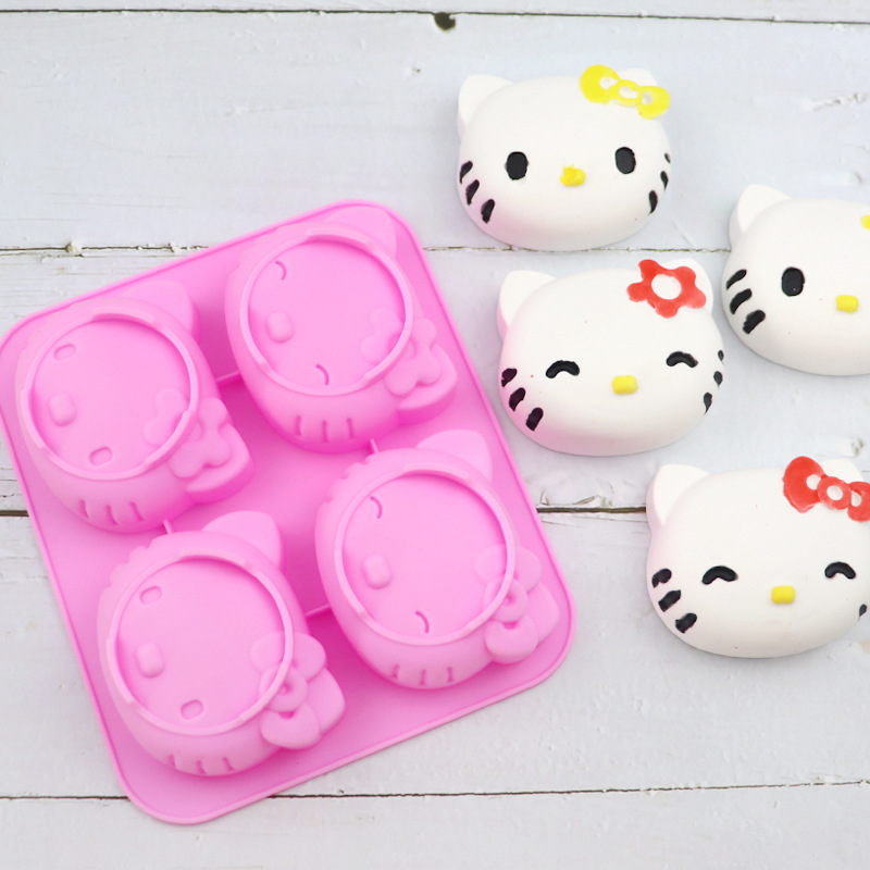 4連猫頭アニメのアイデアよりシリコンケーキの金型を焼く手作り精油石けん金型