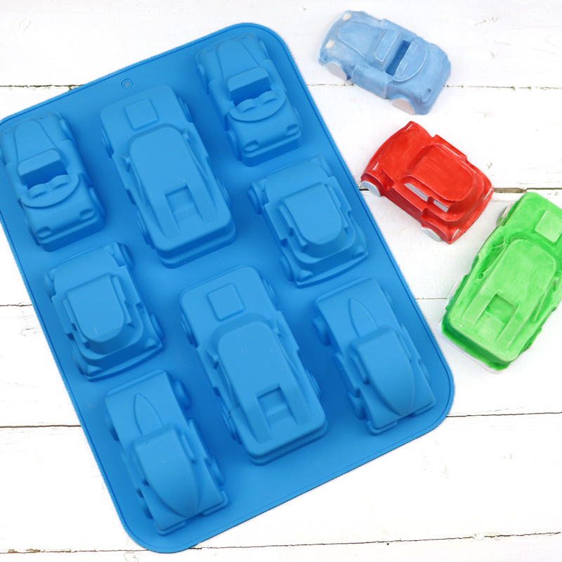 8連自動車スポーツカーのシリコンケーキ金型diy焙煎金型手作り石けん漫画列車石膏金型