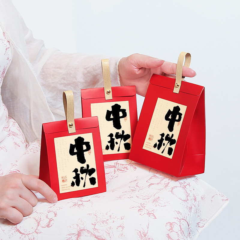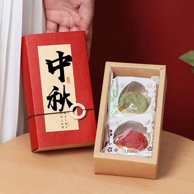 中秋節包装箱、4個入り2箱、外箱袋、高級卵黄パイ生地焼き菓子、ミニギフトボックス