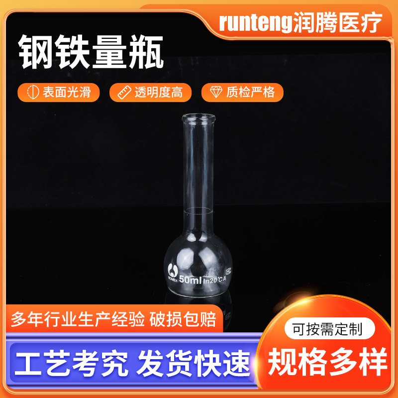 鉄鋼計量瓶50/100mlガラス定容瓶鉄鋼炉分析熱溶解瓶実験室ガラス器材