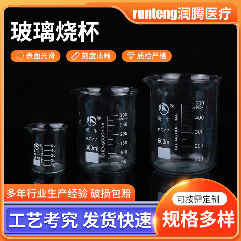 ガラス計量カップスポットスケール付き耐高温加熱実験室透明ガラスビーカー50/300/500ml