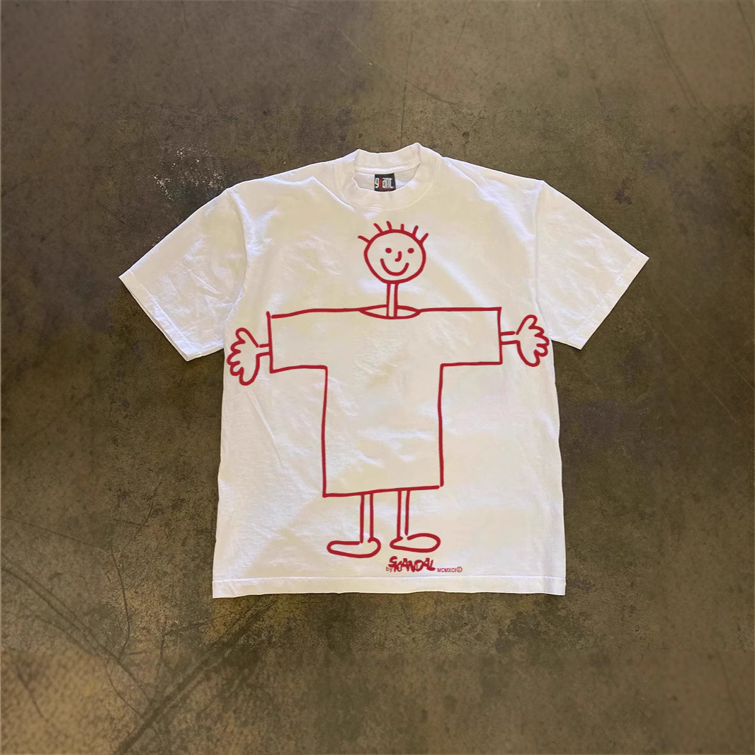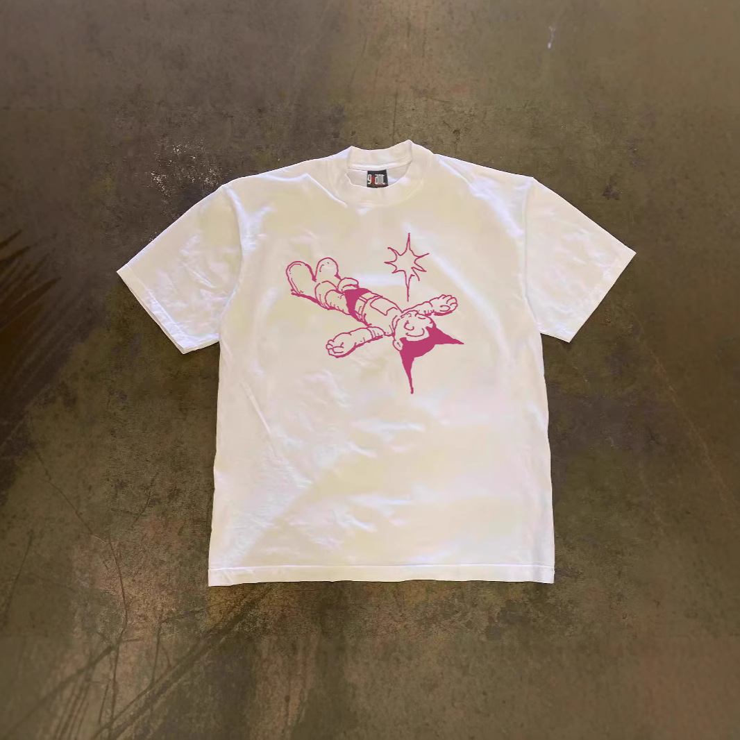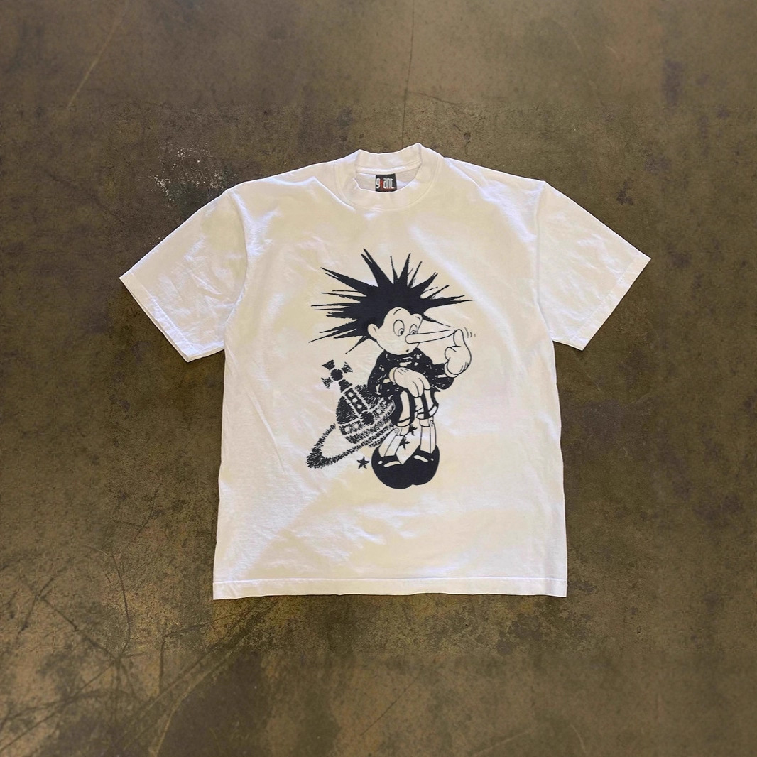 厚手の純綿250g!アメリカン オーバーサイズ ピノキオ プリント カップル レディース ルーズ 半袖 Tシャツ メンズ Y2K