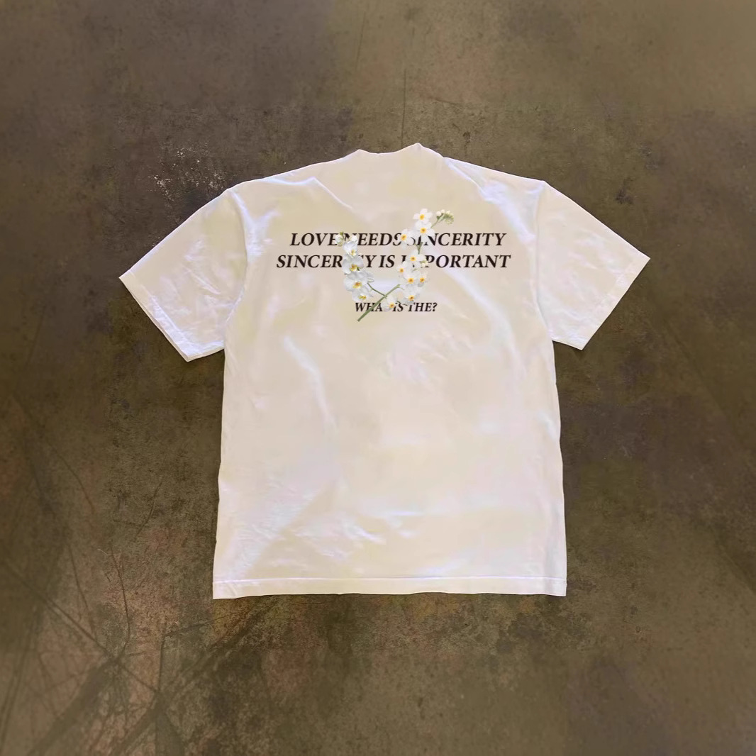 重いポンドの純綿250グラム! アメリカンoversize白い花英語プリントカップルゆるい半袖tシャツ男潮