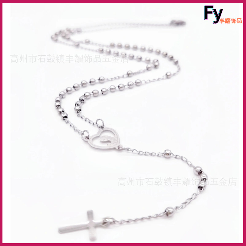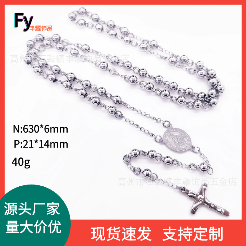 クロスボーダー热い贩売6mm钢色仏ビーズネックレス锁ステンレス钢ボールネックレスクロスネックレスdiyネックレス