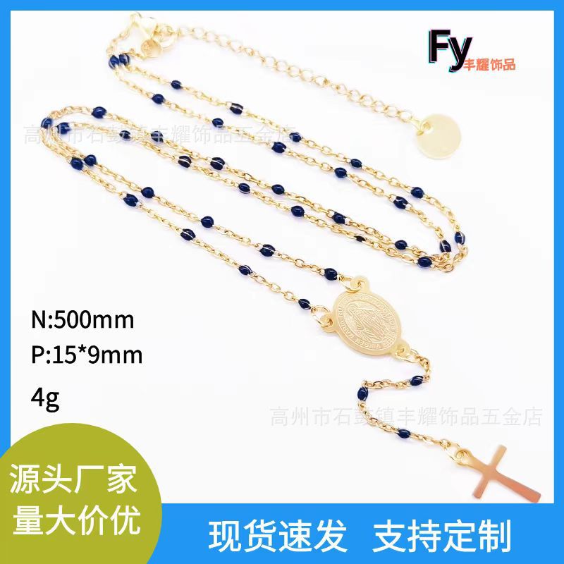 金色のステンレスの油のチェーンの米の玉のチェーンのゴムのチェーンの鎖の骨のチェーンの十字のネックレスは国境を越えて販売します。
