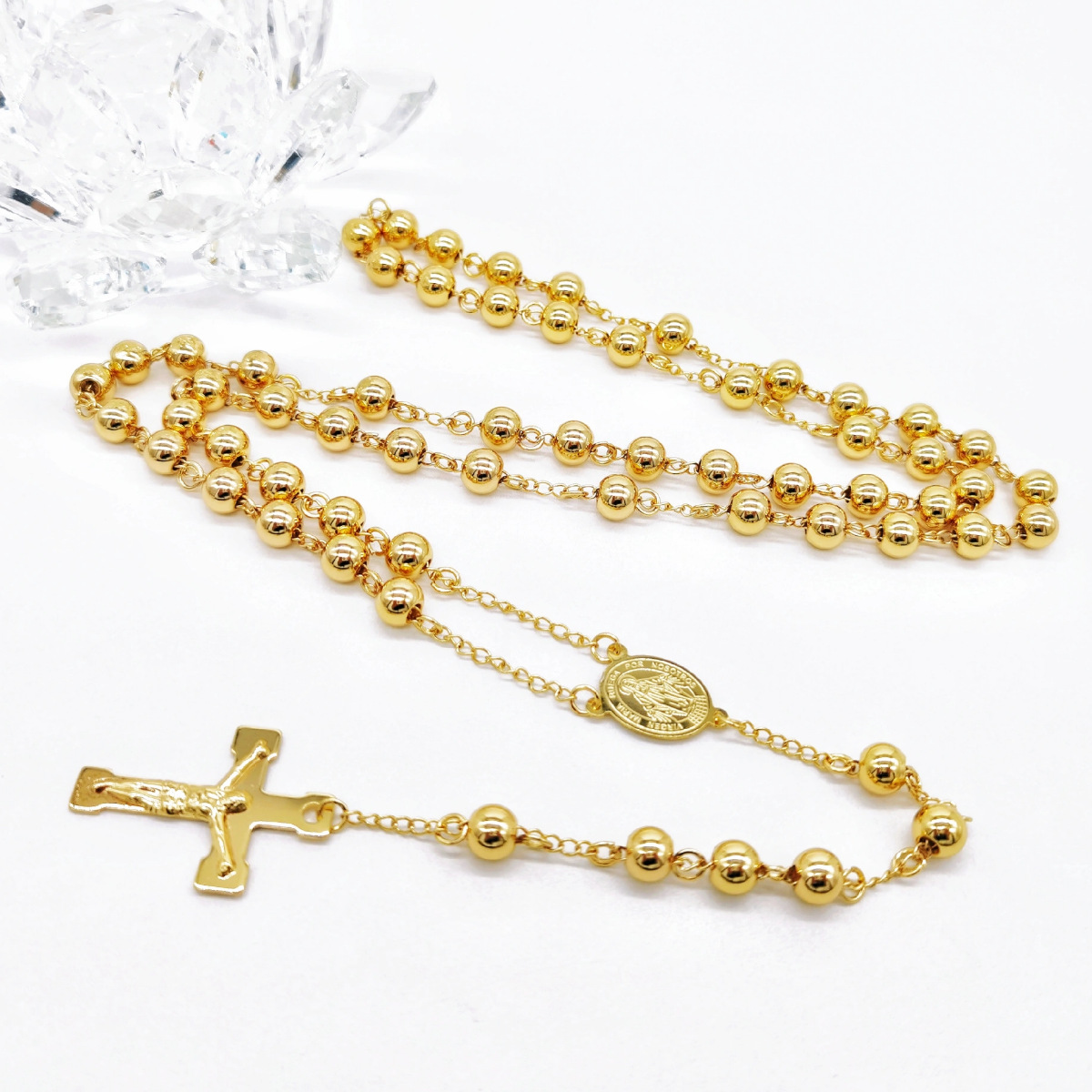 クロスボーダー熱売4mm金鋼薔薇三色仏珠ネックレス鎖骨鎖ステンレス丸珠ネックレスクロスネックレスd