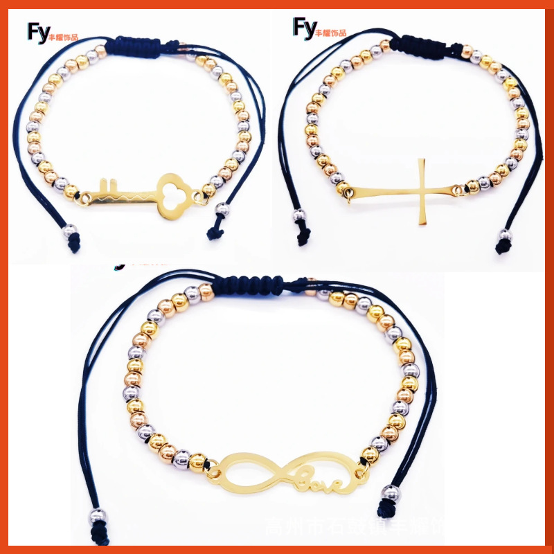 クロスボーダー热い贩売4mmゴールドスチールローズ三色ビーズ手ロープステンレスストレート穴ビーズdiyロープブレスレットストレッチ