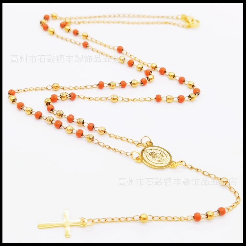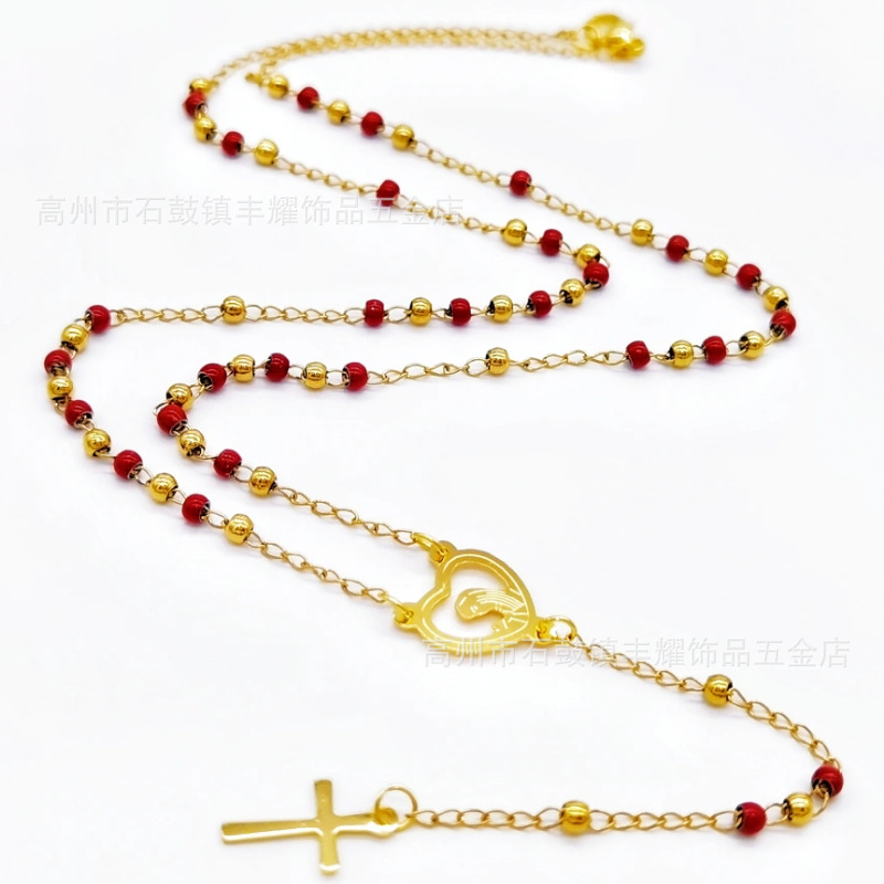 クロスボーダー热い贩売3mm金间赤色仏珠ネックレス锁ステンレス钢ボールネックレスクロスネックレス