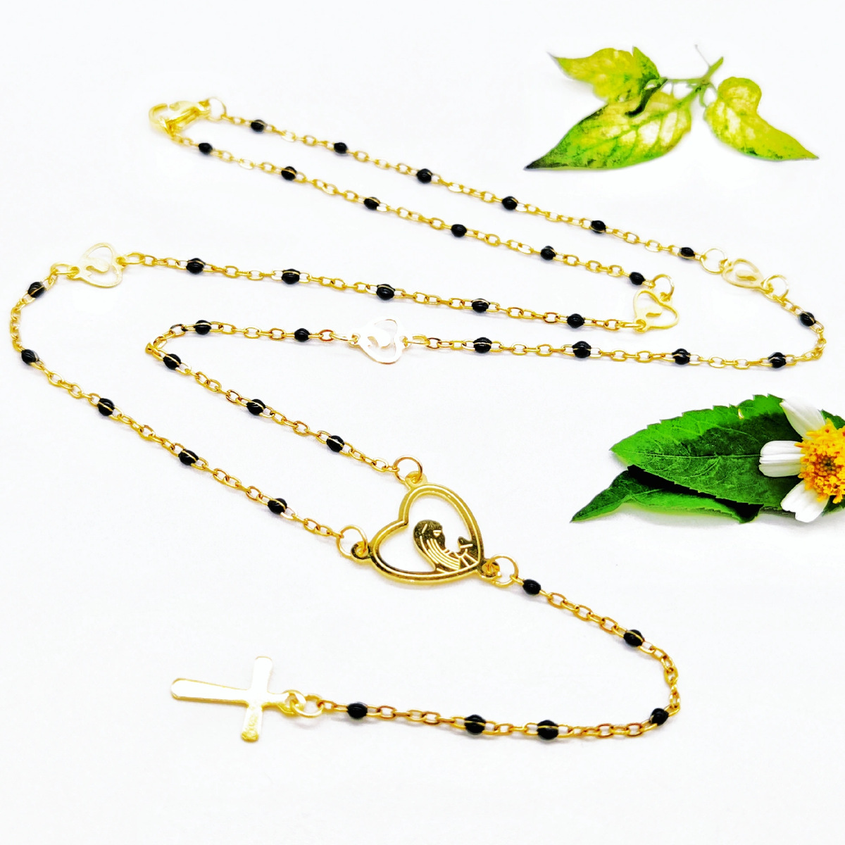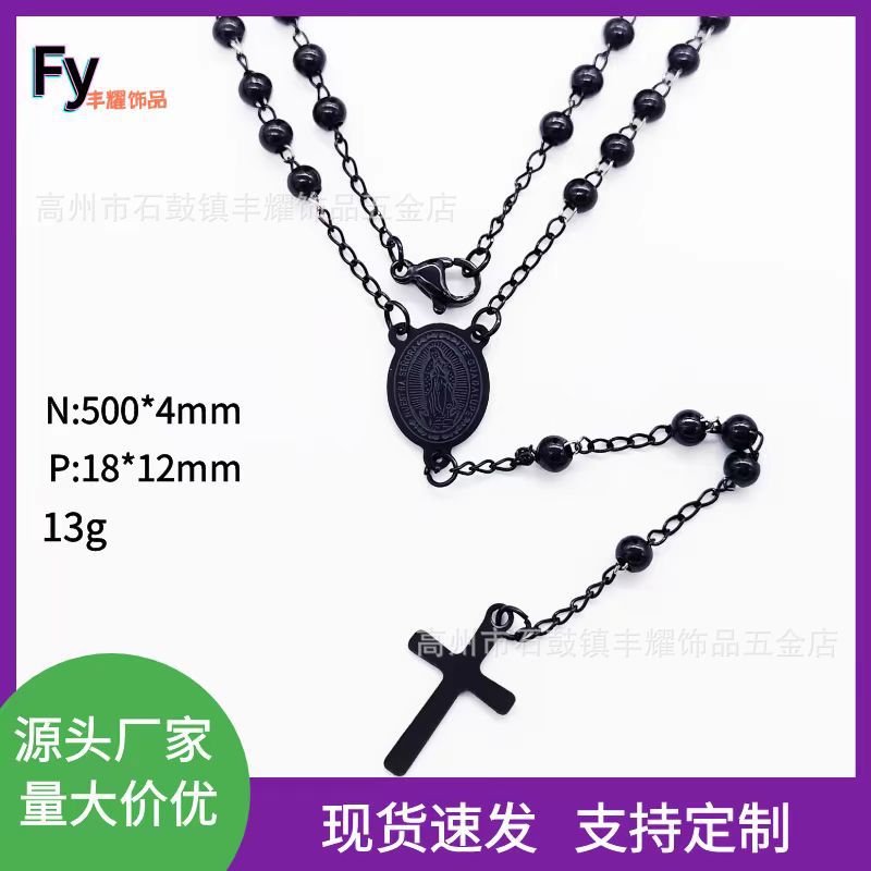 クロスボーダー热い贩売4mmメッキ黒い仏ビーズネックレス锁ステンレス钢ラウンドビーズネックレスクロスネックレスdiy项目