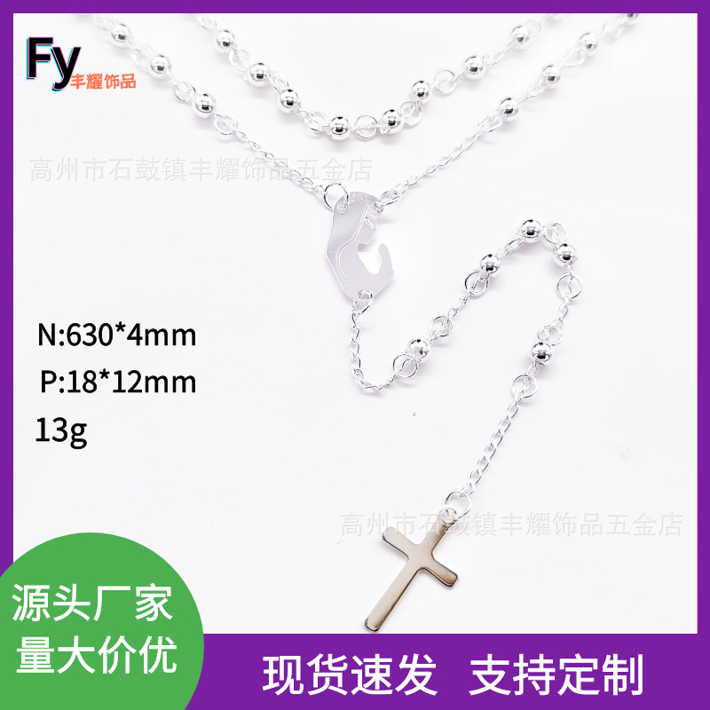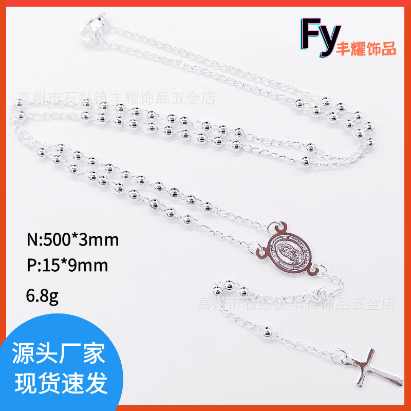 クロスボーダー热い贩売3mmシルバー仏ビーズネックレス锁ステンレス钢ボールネックレスクロスネックレスdiyネックレス