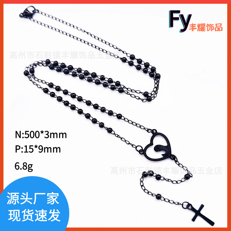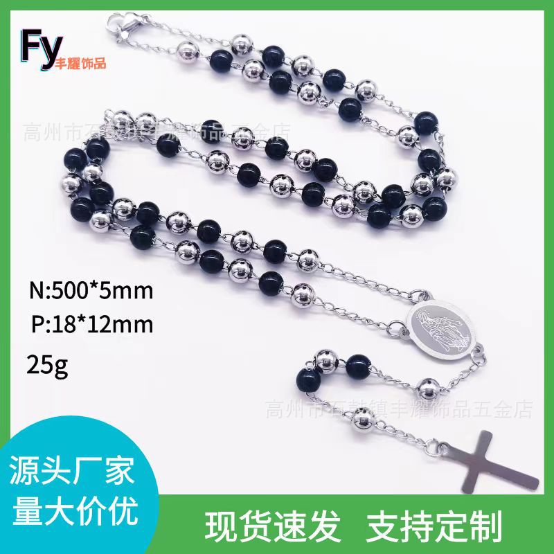 クロスボーダー热い贩売5mm钢间黒い仏ビーズネックレス锁ステンレス钢ボールネックレスクロスネックレスdiy