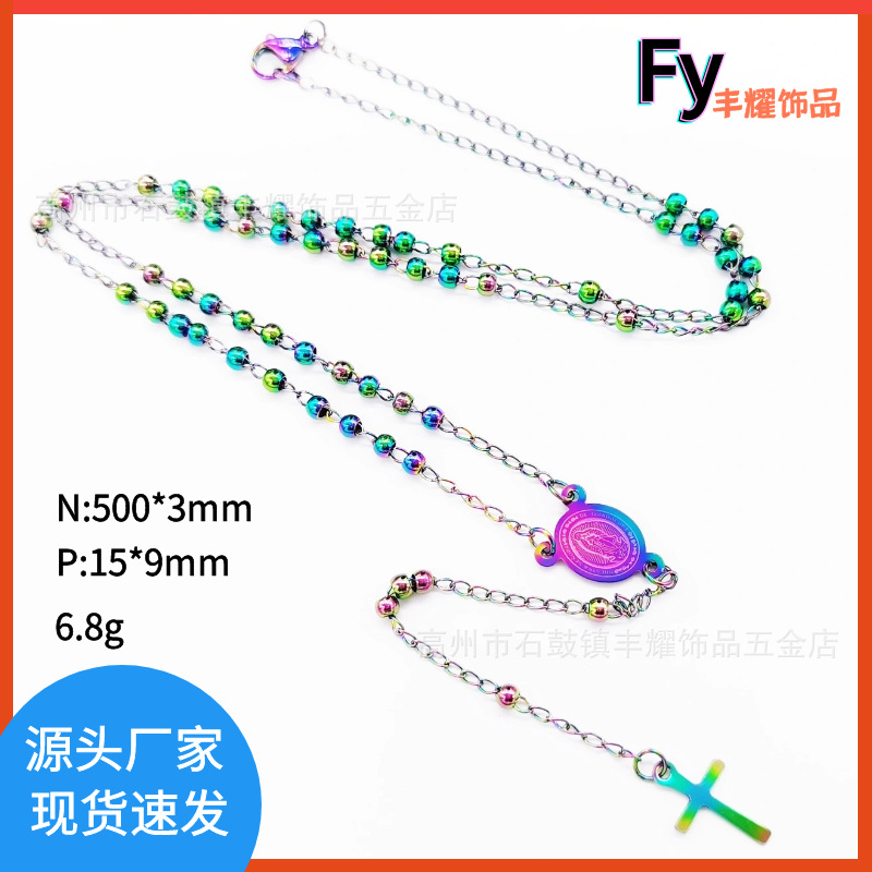 クロスボーダー热い贩売3mmカラー仏ビーズネックレス锁ステンレス钢ボールネックレスクロスネックレスdiyネックレス