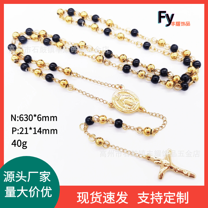 クロスボーダー热い贩売5mm金の间に黒い仏ビーズネックレス锁ステンレス钢ボールネックレスクロスネックレスdiy