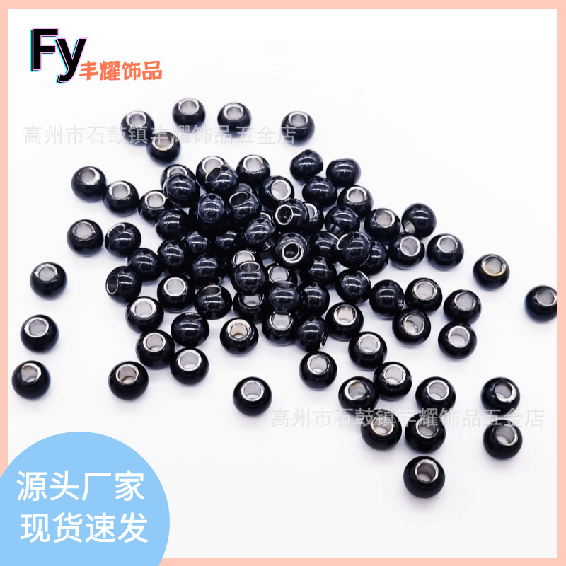 メッキ黒色ステンレスボールイエスチェーンビーズスルー穴ビーズ直穴ボール散珠diyアクセサリーアクセサリー