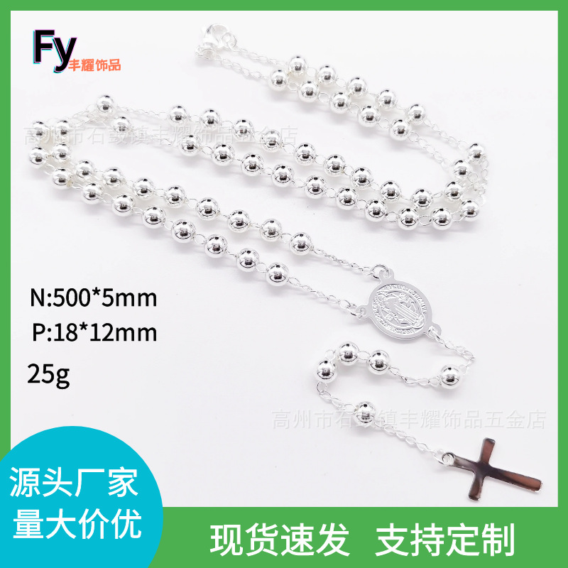 クロスボーダー热い贩売5mm钢色仏ビーズネックレス锁ステンレス钢ボールネックレスクロスネックレスdiyネックレス