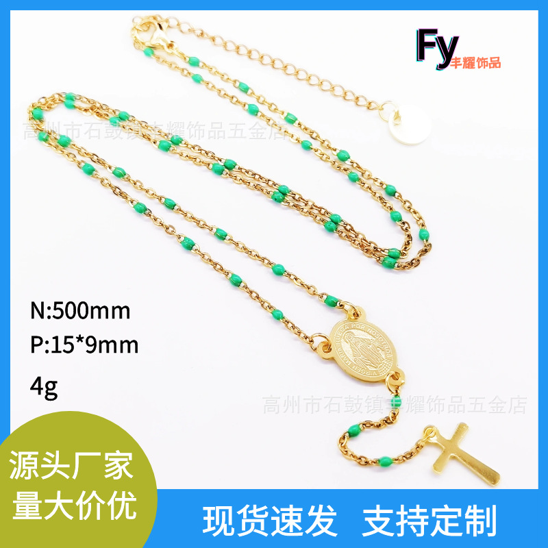 グリーン/ゴールドステンレスドリップチェーン米珠チェーンドリップチェーン骨鎖クロスネックレスクロスボーダー熱売