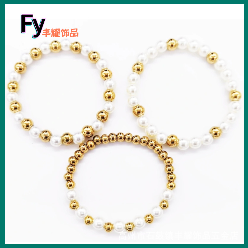 クロスボーダー热い贩売ステンレスビーズブレスレットパールビーズブレスレットdiy弾性ロープブレスレットストレッチブレスレット