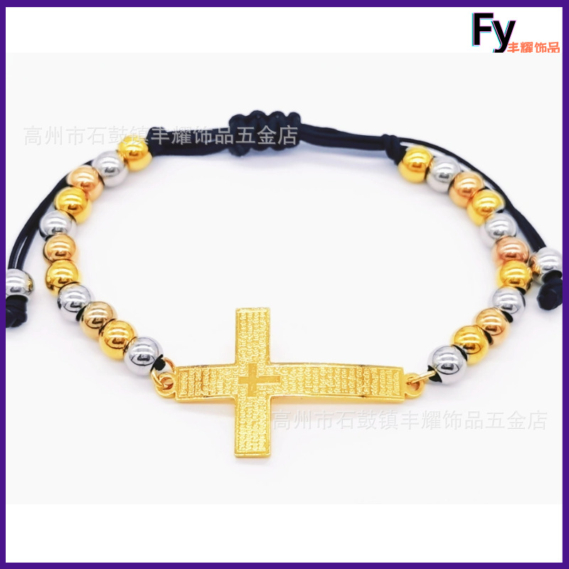 クロスボーダー热い贩売6mm金钢メイ三色ビーズ手ロープステンレス钢ストレート穴ビーズdiyロープブレスレットストレッチ