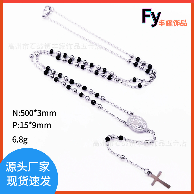 クロスボーダー热い贩売3mm钢间黒仏珠ネックレス锁ステンレス钢ボールネックレスクロスネックレスdiy